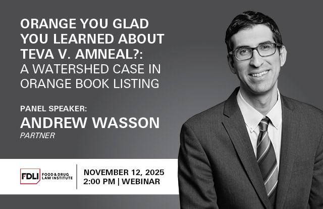 Andrew Wasson serving as a panelist for FDLI’s Orange You Glad You Learned About Teva v. Amneal?: A Watershed Case in Orange Book Listing READ MORE